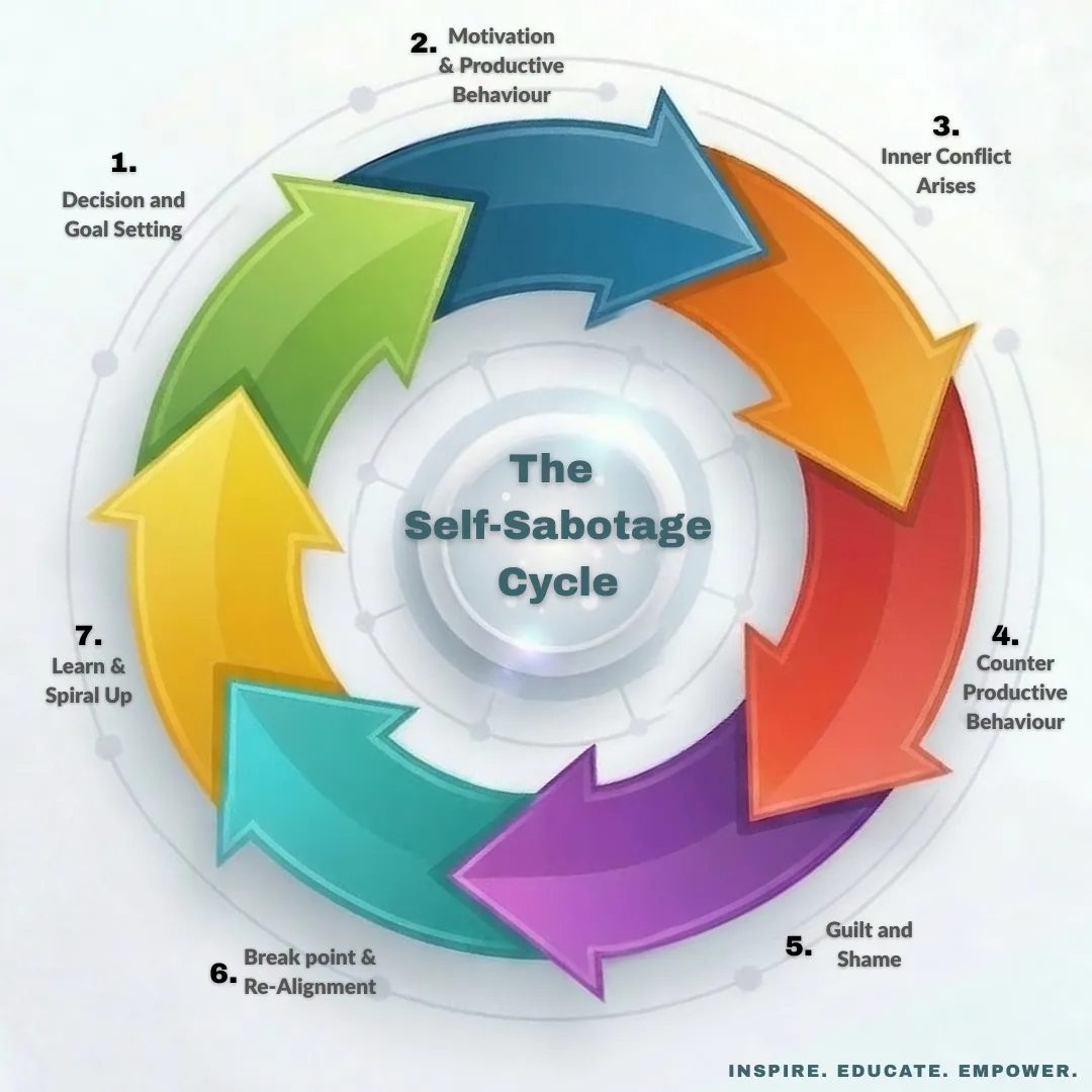 The 7-Stage Self-Sabotage Cycle explained — so you can finally diagnose what's actually happening when a client starts slipping